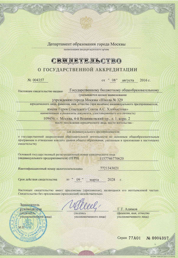 Школа №329 им. Героя Советского Союза А.С. Хлобыстова