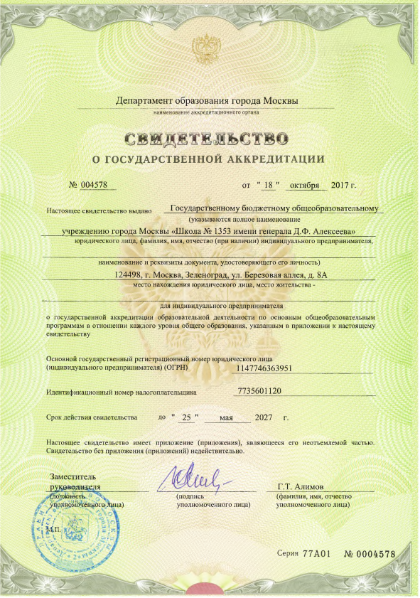 Школа №1353 им. генерала Д.Ф. Алексеева