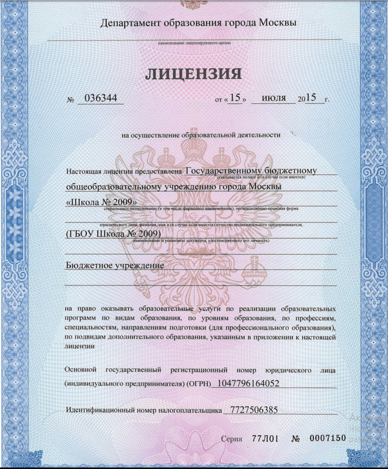 Государственное бюджетное общеобразовательное учреждение города Москвы «Школа № 2009»