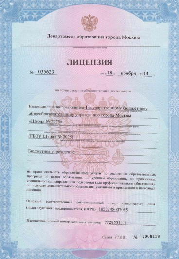 Государственное бюджетное общеобразовательное учреждение города Москвы «Школа № 2025»