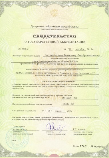 Государственное бюджетное общеобразовательное учреждение города Москвы «Школа № 1788»