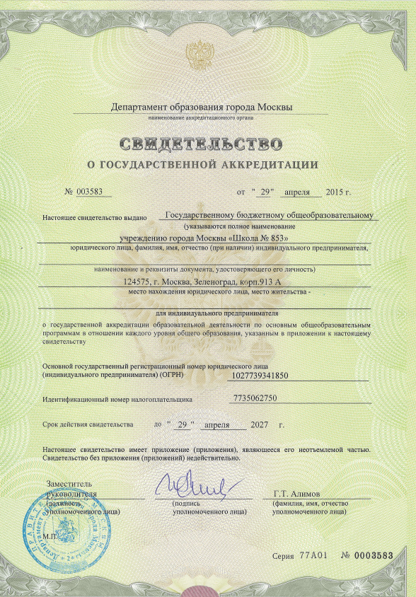Государственное бюджетное общеобразовательное учреждение города Москвы «Школа № 853»